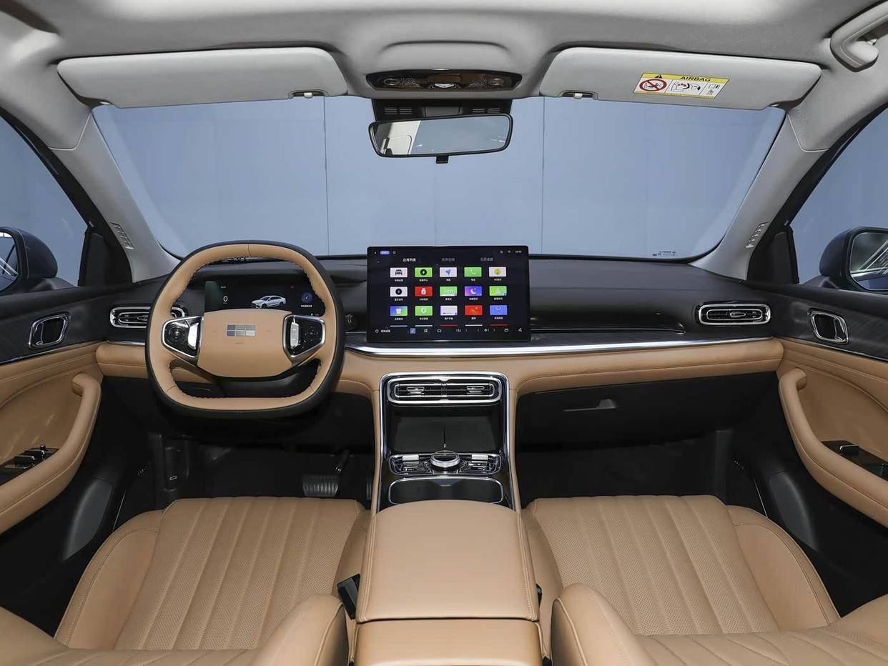 内饰方面,银河星耀6配备了10.2英寸液晶仪表盘和14.6英寸中控屏幕,因为吉利收购了魅族,它的车机系统就是魅族所研发的Flyme Auto,支持Flyme Link、高德地图、双区域语音识别控制、车联网、手机APP远程功能和OTA升级等。