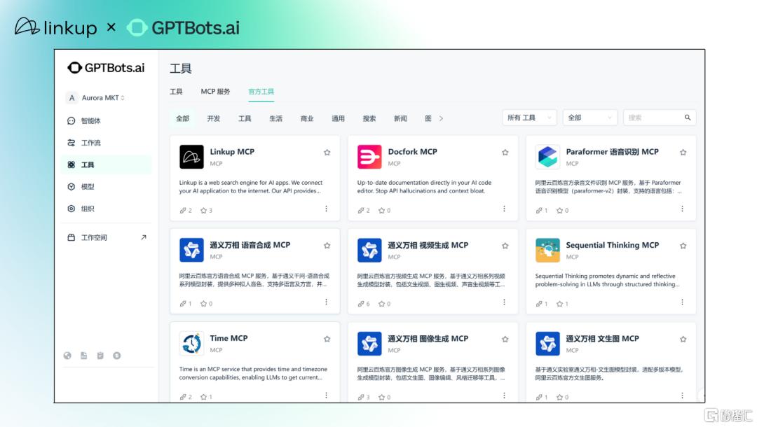基于 GPTBots 构建的 AI 智能体现可利用Linkup的实时精准网页搜索,提供更丰富、更相关的答案和建议,有效连接企业系统与全球信息。
